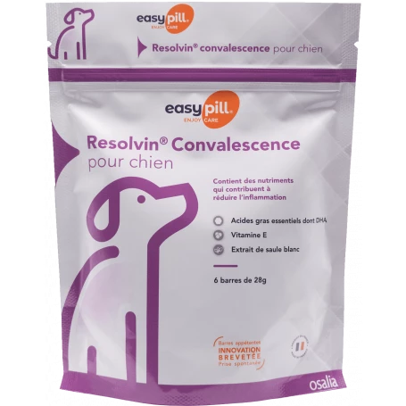 n ","attr":{"id":"","class":""},"moduleName":"totcustomfields"}],"allow_oosp":0,"category":"convalescence","category_name":"Convalescence","link":"https://www.vetoavenue.fr/74845-easypill-chien-resolvin-convalescence.html","attribute_price":0.59,"price_tax_exc":27.31,"price_without_reduction":32.772,"reduction":0,"specific_prices":[],"quantity":99,"quantity_all_versions":99,"id_image":"fr-default","features":[{"name":"Groupe Espu00e8ces","value":"Chiens","id_feature":"1","position":"0"},{"name":"Espu00e8ces","value":"Chiens","id_feature":"2","position":"1"},{"name":"Type de produits","value":"Produits vu00e9tu00e9rinaires","id_feature":"3","position":"2"},{"name":"Type de produits","value":"Complu00e9ments nutritionnels","id_feature":"3","position":"2"},{"name":"Objectifs Santu00e9","value":"Convalescence/fatigue","id_feature":"6","position":"5"}],"attachments":[],"virtual":0,"pack":0,"packItems":[],"nopackprice":0,"customization_required":false,"attributes":{"5":{"id_attribute":"11581","id_attribute_group":"5","name":"6 barres de 28 g","group":"Pru00e9sentation","reference":"3401141363400","ean13":"3401141363400","isbn":"","upc":"340114136340","mpn":""}},"rate":20,"tax_name":"TVA FR 20%","ecotax_rate":0,"unit_price":"","customizations":{"fields":[]},"id_customization":0,"is_customizable":false,"show_quantities":true,"quantity_label":"Produits","quantity_discounts":[],"customer_group_discount":0,"images":[{"bySize":{"cart_default":{"url":"https://www.vetoavenue.fr/159927-cart_default/easypill-chien-resolvin-convalescence.jpg","width":90,"height":90},"small_default":{"url":"https://www.vetoavenue.fr/159927-small_default/easypill-chien-resolvin-convalescence.jpg","width":90,"height":90},"home_default":{"url":"https://www.vetoavenue.fr/159927-home_default/easypill-chien-resolvin-convalescence.jpg","width":278,"height":278},"medium_default":{"url":"https://www.vetoavenue.fr/159927-medium_default/easypill-chien-resolvin-convalescence.jpg","width":455,"height":455},"large_default":{"url":"https://www.vetoavenue.fr/159927-large_default/easypill-chien-resolvin-convalescence.jpg","width":800,"height":800}},"small":{"url":"https://www.vetoavenue.fr/159927-cart_default/easypill-chien-resolvin-convalescence.jpg","width":90,"height":90},"medium":{"url":"https://www.vetoavenue.fr/159927-home_default/easypill-chien-resolvin-convalescence.jpg","width":278,"height":278},"large":{"url":"https://www.vetoavenue.fr/159927-large_default/easypill-chien-resolvin-convalescence.jpg","width":800,"height":800},"legend":"","id_image":"159927","cover":"1","position":"1","associatedVariants":["138173"]}],"cover":{"bySize":{"cart_default":{"url":"https://www.vetoavenue.fr/159927-cart_default/easypill-chien-resolvin-convalescence.jpg","width":90,"height":90},"small_default":{"url":"https://www.vetoavenue.fr/159927-small_default/easypill-chien-resolvin-convalescence.jpg","width":90,"height":90},"home_default":{"url":"https://www.vetoavenue.fr/159927-home_default/easypill-chien-resolvin-convalescence.jpg","width":278,"height":278},"medium_default":{"url":"https://www.vetoavenue.fr/159927-medium_default/easypill-chien-resolvin-convalescence.jpg","width":455,"height":455},"large_default":{"url":"https://www.vetoavenue.fr/159927-large_default/easypill-chien-resolvin-convalescence.jpg","width":800,"height":800}},"small":{"url":"https://www.vetoavenue.fr/159927-cart_default/easypill-chien-resolvin-convalescence.jpg","width":90,"height":90},"medium":{"url":"https://www.vetoavenue.fr/159927-home_default/easypill-chien-resolvin-convalescence.jpg","width":278,"height":278},"large":{"url":"https://www.vetoavenue.fr/159927-large_default/easypill-chien-resolvin-convalescence.jpg","width":800,"height":800},"legend":"","id_image":"159927","cover":"1","position":"1","associatedVariants":["138173"]},"has_discount":false,"discount_type":null,"discount_percentage":null,"discount_percentage_absolute":null,"discount_amount":null,"discount_amount_to_display":null,"price_amount":32.77,"unit_price_full":"","show_availability":true,"availability_date":null,"availability_message":"Livraison entre 48h et 72h (hors Corse) ouvru00e9s chez votre vu00e9tu00e9rinaire","availability":"available"} »>