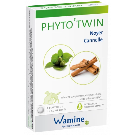 ","description_short":"","available_now":"Livraison entre 48h et 72h (hors Corse) ouvru00e9s chez votre vu00e9tu00e9rinaire","available_later":"En cours de ru00e9approvisionnement","id":75904,"id_product":75904,"out_of_stock":2,"new":0,"id_product_attribute":140005,"quantity_wanted":1,"extraContent":[{"title":"Product tab title","content":"","attr":{"id":"","class":""},"moduleName":"totcustomfields"}],"allow_oosp":0,"category":"homeopathie-phytotherapie","category_name":"Homu00e9opathie/phytothu00e9rapie","link":"https://www.vetoavenue.fr/75904-phyto-twin-noyer-cannelle.html","attribute_price":3.28,"price_tax_exc":10.64,"price_without_reduction":12.768,"reduction":0,"specific_prices":[],"quantity":99,"quantity_all_versions":99,"id_image":"fr-default","features":[{"name":"Groupe Espu00e8ces","value":"NAC","id_feature":"1","position":"0"},{"name":"Groupe Espu00e8ces","value":"Chats","id_feature":"1","position":"0"},{"name":"Groupe Espu00e8ces","value":"Chiens","id_feature":"1","position":"0"},{"name":"Espu00e8ces","value":"Chats","id_feature":"2","position":"1"},{"name":"Espu00e8ces","value":"Chiens","id_feature":"2","position":"1"},{"name":"Espu00e8ces","value":"NAC","id_feature":"2","position":"1"},{"name":"Type de produits","value":"Produits vu00e9tu00e9rinaires","id_feature":"3","position":"2"},{"name":"Type de produits","value":"Homu00e9opathie/phytothu00e9rapie","id_feature":"3","position":"2"},{"name":"Objectifs Santu00e9","value":"Systu00e8me hu00e9pato-digestif","id_feature":"6","position":"5"}],"attachments":[],"virtual":0,"pack":0,"packItems":[],"nopackprice":0,"customization_required":false,"attributes":{"5":{"id_attribute":"11947","id_attribute_group":"5","name":"30 comprimu00e9s","group":"Pru00e9sentation","reference":"3701145680030","ean13":"3701145680030","isbn":"","upc":"370114568003","mpn":""}},"rate":20,"tax_name":"TVA FR 20%","ecotax_rate":0,"unit_price":"","customizations":{"fields":[]},"id_customization":0,"is_customizable":false,"show_quantities":true,"quantity_label":"Produits","quantity_discounts":[],"customer_group_discount":0,"images":[{"bySize":{"cart_default":{"url":"https://www.vetoavenue.fr/160460-cart_default/phyto-twin-noyer-cannelle.jpg","width":90,"height":90},"small_default":{"url":"https://www.vetoavenue.fr/160460-small_default/phyto-twin-noyer-cannelle.jpg","width":90,"height":90},"home_default":{"url":"https://www.vetoavenue.fr/160460-home_default/phyto-twin-noyer-cannelle.jpg","width":278,"height":278},"medium_default":{"url":"https://www.vetoavenue.fr/160460-medium_default/phyto-twin-noyer-cannelle.jpg","width":455,"height":455},"large_default":{"url":"https://www.vetoavenue.fr/160460-large_default/phyto-twin-noyer-cannelle.jpg","width":800,"height":800}},"small":{"url":"https://www.vetoavenue.fr/160460-cart_default/phyto-twin-noyer-cannelle.jpg","width":90,"height":90},"medium":{"url":"https://www.vetoavenue.fr/160460-home_default/phyto-twin-noyer-cannelle.jpg","width":278,"height":278},"large":{"url":"https://www.vetoavenue.fr/160460-large_default/phyto-twin-noyer-cannelle.jpg","width":800,"height":800},"legend":"","id_image":"160460","cover":"1","position":"1","associatedVariants":["140005"]}],"cover":{"bySize":{"cart_default":{"url":"https://www.vetoavenue.fr/160460-cart_default/phyto-twin-noyer-cannelle.jpg","width":90,"height":90},"small_default":{"url":"https://www.vetoavenue.fr/160460-small_default/phyto-twin-noyer-cannelle.jpg","width":90,"height":90},"home_default":{"url":"https://www.vetoavenue.fr/160460-home_default/phyto-twin-noyer-cannelle.jpg","width":278,"height":278},"medium_default":{"url":"https://www.vetoavenue.fr/160460-medium_default/phyto-twin-noyer-cannelle.jpg","width":455,"height":455},"large_default":{"url":"https://www.vetoavenue.fr/160460-large_default/phyto-twin-noyer-cannelle.jpg","width":800,"height":800}},"small":{"url":"https://www.vetoavenue.fr/160460-cart_default/phyto-twin-noyer-cannelle.jpg","width":90,"height":90},"medium":{"url":"https://www.vetoavenue.fr/160460-home_default/phyto-twin-noyer-cannelle.jpg","width":278,"height":278},"large":{"url":"https://www.vetoavenue.fr/160460-large_default/phyto-twin-noyer-cannelle.jpg","width":800,"height":800},"legend":"","id_image":"160460","cover":"1","position":"1","associatedVariants":["140005"]},"has_discount":false,"discount_type":null,"discount_percentage":null,"discount_percentage_absolute":null,"discount_amount":null,"discount_amount_to_display":null,"price_amount":12.77,"unit_price_full":"","show_availability":true,"availability_date":null,"availability_message":"Livraison entre 48h et 72h (hors Corse) ouvru00e9s chez votre vu00e9tu00e9rinaire","availability":"available"} »>