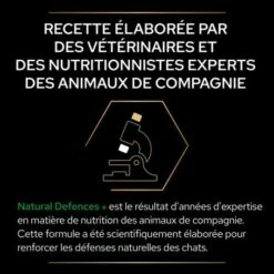 PRO PLANu00ae Natural Defences+ protu00e8ge votre chat de lu2019intu00e9rieur, gru00e2ce u00e0 l’action des postbiotiques. Sa formule est scientifiquement conu00e7ue pour soutenir le systu00e8me immunitaire de votre chat et aider u00e0 la production naturelle d’anticorps.