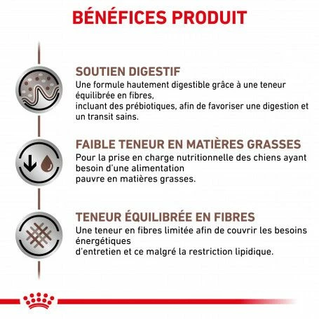 Les croquettes pour chien Royal Canin Dog Gastro Intestinal Low Fat sont u00e9laboru00e9es pour les chiens sujets aux troubles gastro-intestinaux.