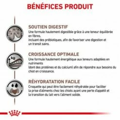 Cet aliment est destinu00e9 u00e0 la prise en charge nutritionnelle des troubles digestifs chez le chiot. Veuillez consulter votre vu00e9tu00e9rinaire avant utilisation.