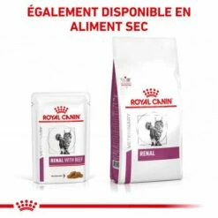 Les sachets repas Royal Canin Veterinary Diet Cat Renal Boeuf sontu00a0conu00e7ues pour les chats souffrants de troubles ru00e9naux.