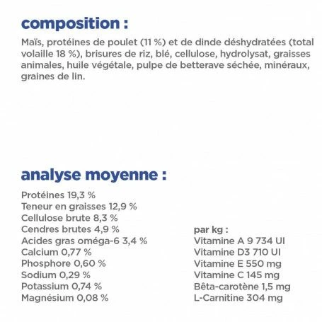 - Peau & Pelage sains : favorisent une peau saine & un pelage extra doux, gru00e2ce u00e0 des acides gras Omu00e9ga-6 & de la vitamine E nourrissants